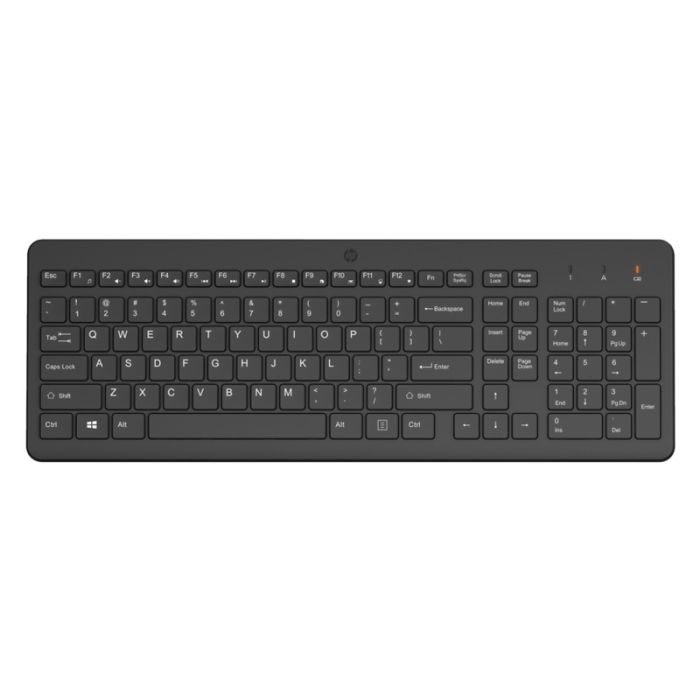Clavier HP 220 – Technologie de Connectivité: Sans Fil(2,4 GHz) – Interface de Connectivité: USB-A – Clavier: AZERTY/Français  Les touches plates de type chiclet offrent une frappe rapide, confortable et précise – 12 combinaisons de touches – Type de batterie: 1 x AAA – Autonomie de la batterie: Jusqu’à 16 mois – Voyant LED: Verrouillage des majuscules; Verrouillage du pavé numérique; Indicateur d’autonomie – Plage sans fil: Jusqu’à 10 mètres en zone ouverte – Type de clavier: Disposition en 2,5 zones – Cycle de vie des touches: 10 millions de frappes pour toutes les touches – Avec pavé numérique – Poids: 425,5 g – Dimensions: 425,9 × 146,1 × 26,8 mm – Couleur: Noir – Garantie: 1 an.